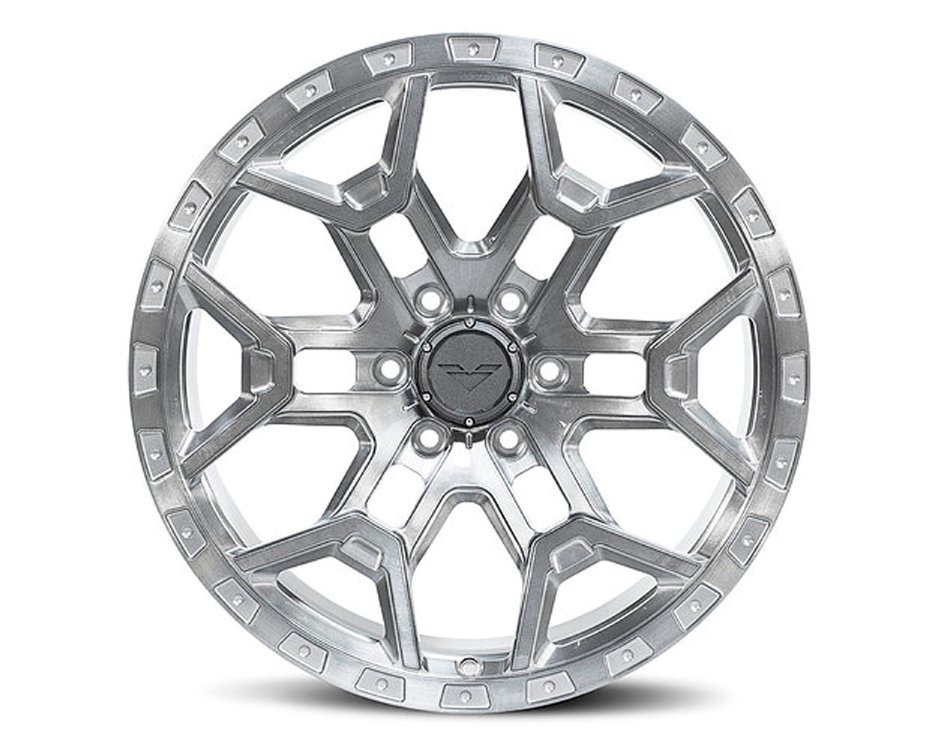 Модель VR-F02 - це вершина лінійки VenomRex: 6-спицевий малюнок, що несе в собі яскраво виражені брутальні риси оффроуд - дисків, виведений на принципово новий рівень завдяки виробництву із кованого алюмінієвого сплаву найвищої якості та майже будь-яким варіантам фінішного оздоблення, що можна уявити. Диски підходять для Ford F-150 та Raptor, Dodge Ram, Chevrolet Silverado, GMC Sierra та Yukon та ін.